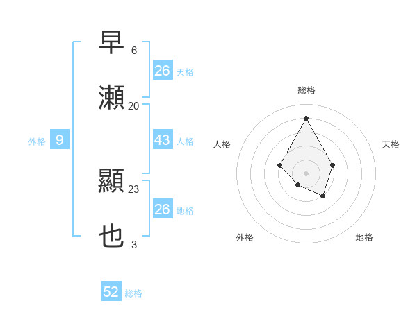 早瀬 顯也さんを姓名の画数から五運を鑑定
