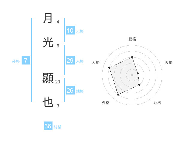 月光 顯也さんの総格は36画の3点!
