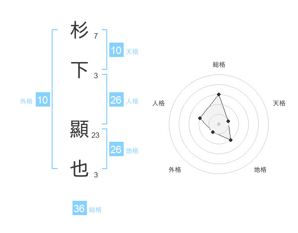 杉下 顯也さんの総格は36画の3点!