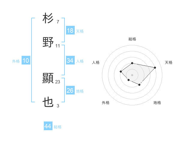 杉野 顯也さんの総格は44画の2点!