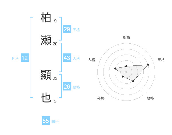柏瀬 顯也さんを姓名の画数から五運を鑑定