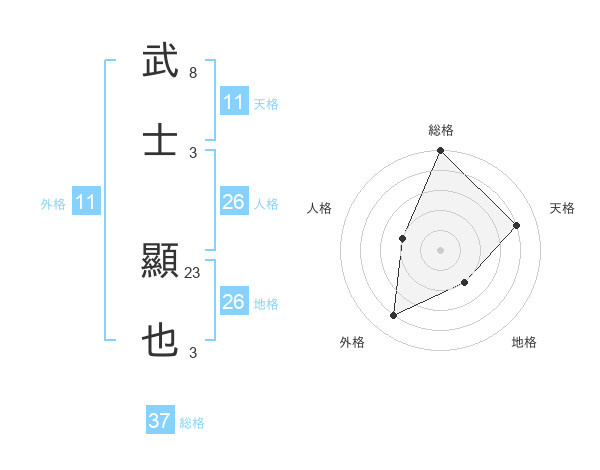 武士 顯也さんの総格は37画の5点!