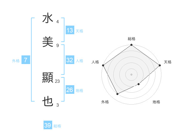 水美 顯也さんの総格は39画の5点!