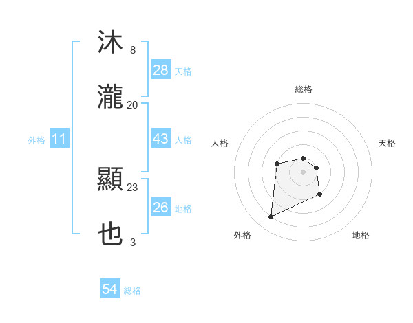 沐瀧 顯也さんを姓名の画数から五運を鑑定
