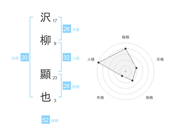 沢柳 顯也さんを姓名の画数から五運を鑑定