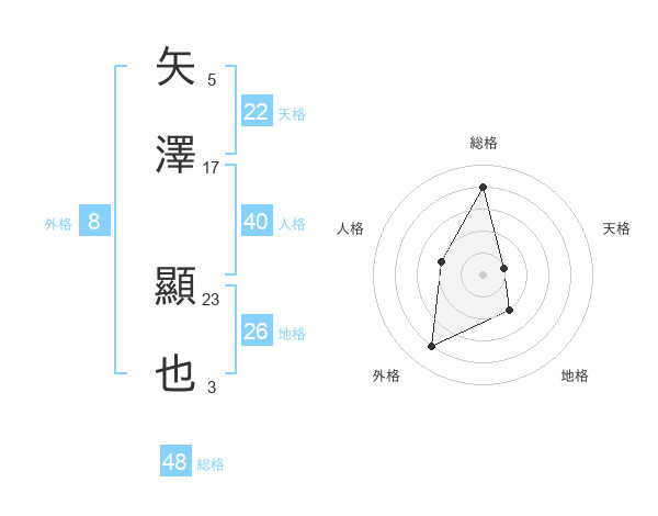 矢澤 顯也さんの天格は22画の1点!