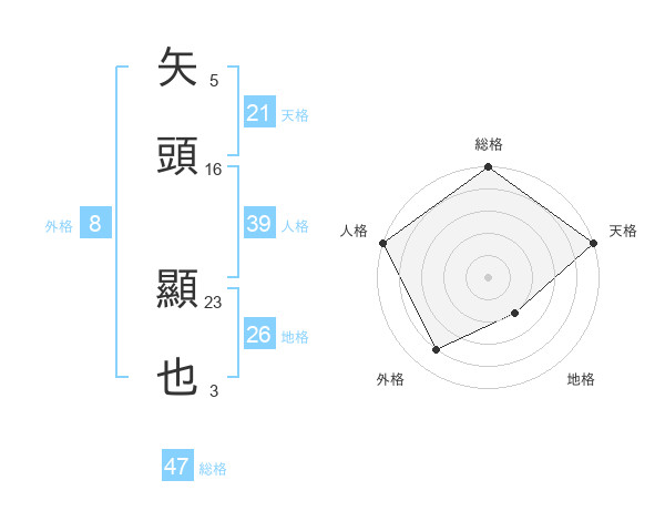 矢頭 顯也さんの総格は47画の5点!