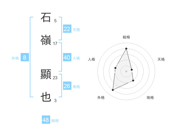 石嶺 顯也さんの総格は48画の4点!