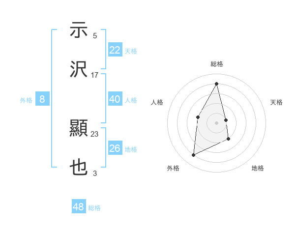 示沢 顯也さんの総格は48画の4点!