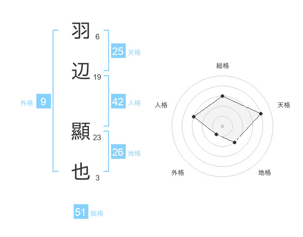 羽辺 顯也さんの総格は51画の3点!