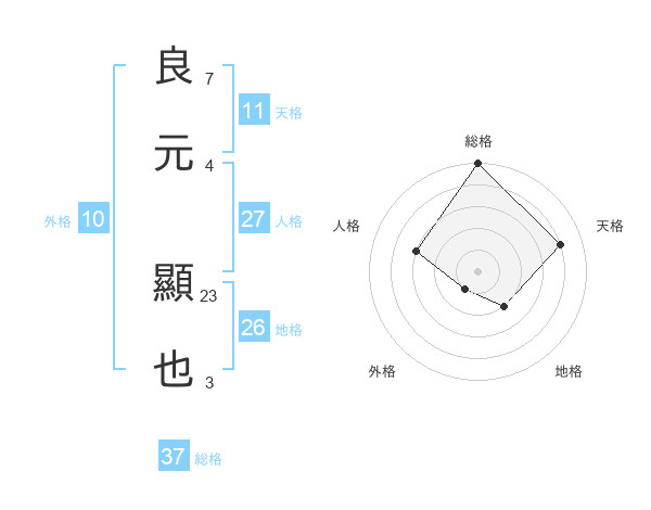 良元 顯也さんの総格は37画の5点!