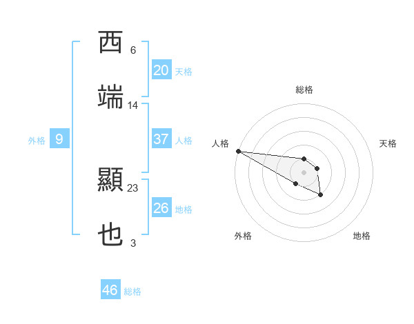 西端 顯也さんの総格は46画の1点!