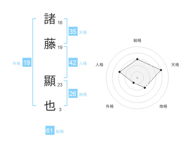 諸藤 顯也さんの総格は61画の3点!