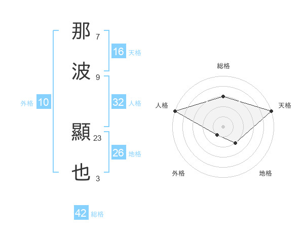 那波 顯也さんの天格は16画の5点!