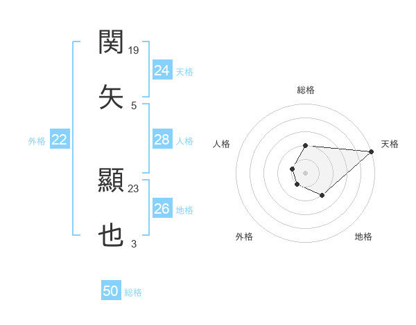 関矢 顯也さんを姓名の画数から五運を鑑定