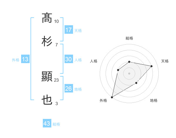 髙杉 顯也さんの天格は17画の4点!