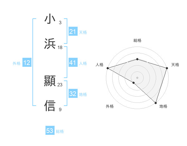 小浜 顯信さんの総格は53画の3点!