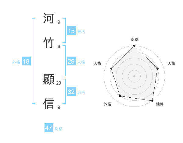 河竹 顯信さんを姓名の画数から五運を鑑定