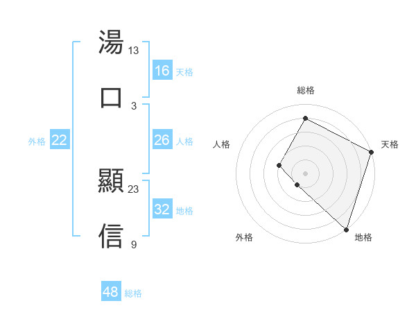 湯口 顯信さんの天格は16画の5点!