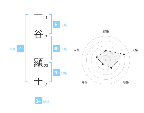 一谷 顯士さんの総格は34画の2点!