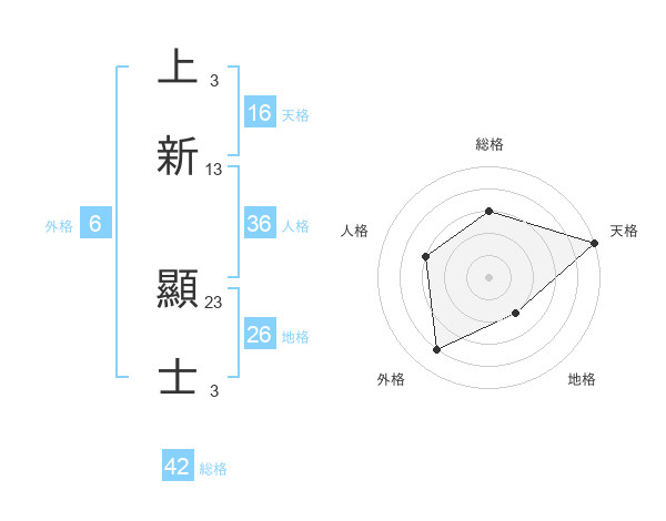 上新 顯士さんの天格は16画の5点!