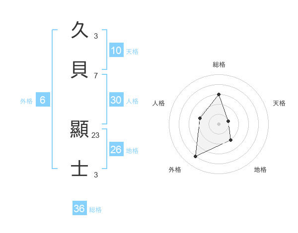 久貝 顯士さんを姓名の画数から五運を鑑定