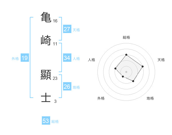 亀崎 顯士さんの総格は53画の3点!