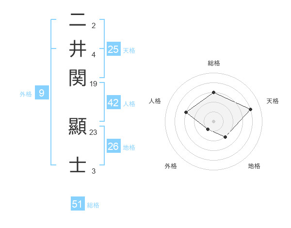 二井関 顯士さんの総格は51画の3点!