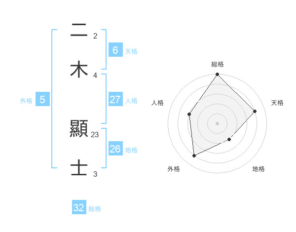 二木 顯士さんの総格は32画の5点!