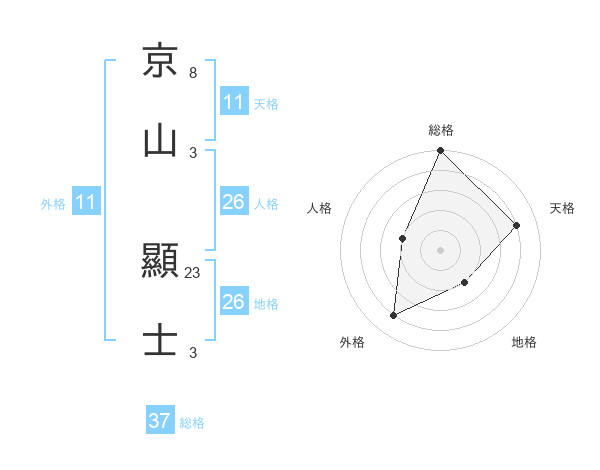 京山 顯士さんの総格は37画の5点!