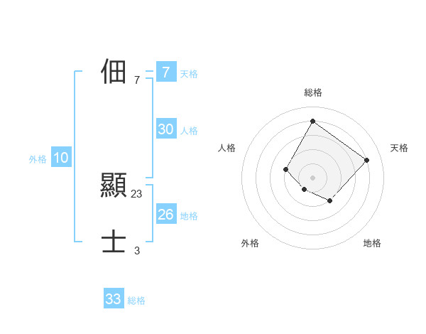 佃 顯士さんの総格は33画の4点!