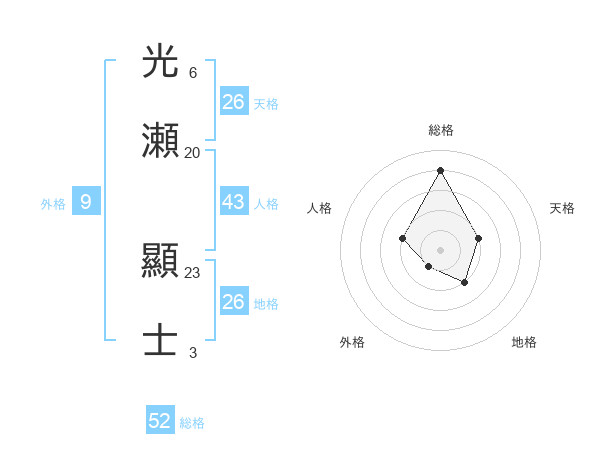 光瀬 顯士さんの総格は52画の4点!