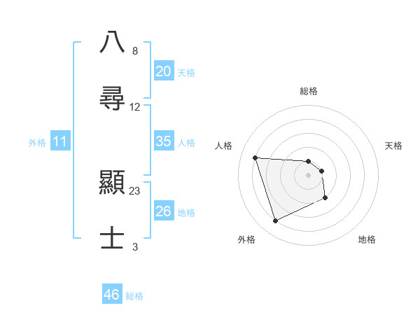 八尋 顯士さんの総格は46画の1点!
