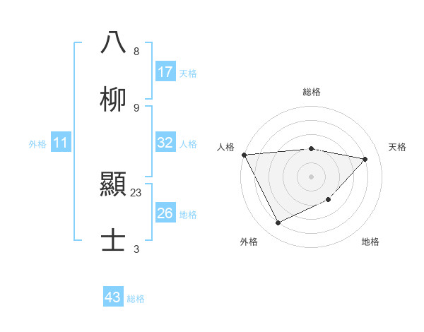 八柳 顯士さんを姓名の画数から五運を鑑定