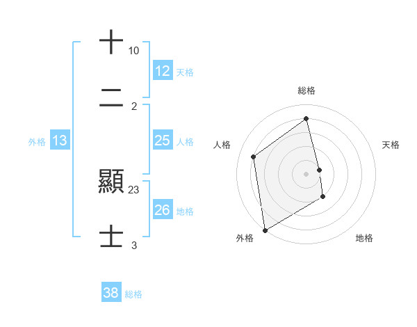 十二 顯士さんの総格は38画の4点!