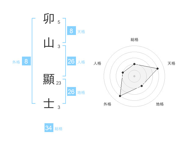 卯山 顯士さんの天格は8画の4点!