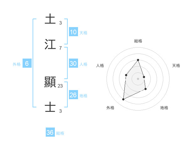 土江 顯士さんの総格は36画の3点!