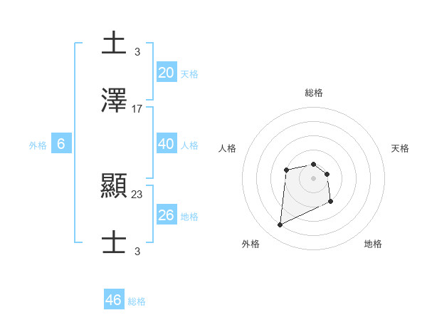 土澤 顯士さんの総格は46画の1点!