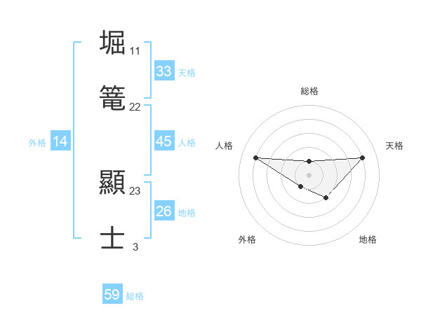 堀篭 顯士さんの総格は59画の1点!