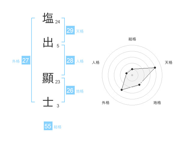塩出 顯士さんを姓名の画数から五運を鑑定