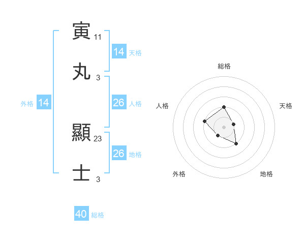 寅丸 顯士さんの外格は14画の1点!