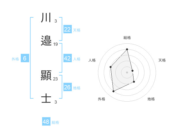 川邉 顯士さんの総格は48画の4点!