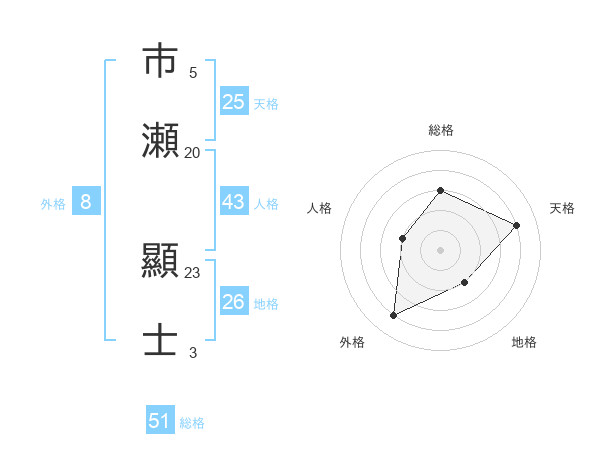 市瀬 顯士さんを姓名の画数から五運を鑑定