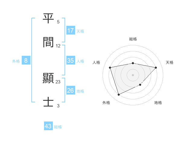 平間 顯士さんの天格は17画の4点!