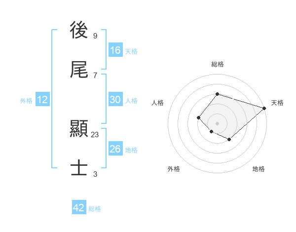 後尾 顯士さんの天格は16画の5点!