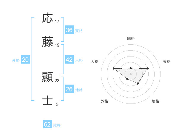 応藤 顯士さんの総格は62画の1点!