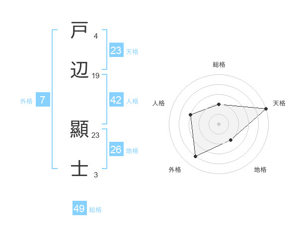 戸辺 顯士さんの天格は23画の5点!