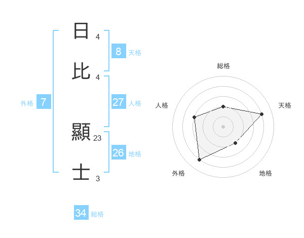 日比 顯士さんの総格は34画の2点!