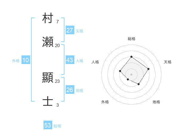 村瀬 顯士さんを姓名の画数から五運を鑑定