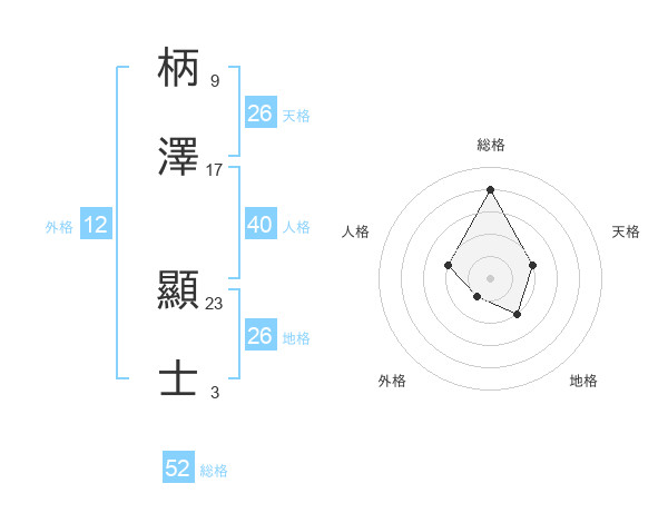柄澤 顯士さんの総格は52画の4点!